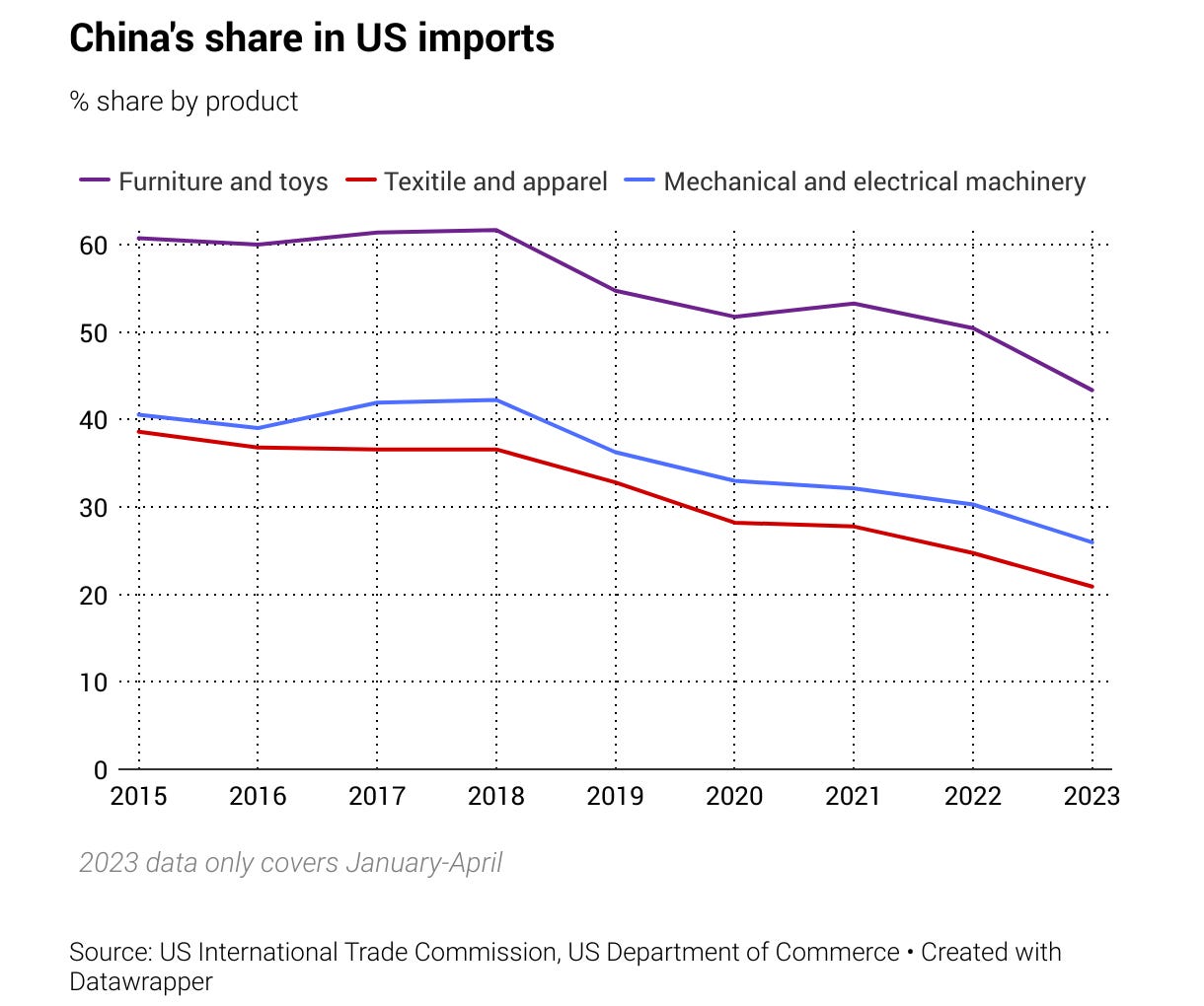 3. This change in the source of import mix for the US also likely reflects a shift within China itself and in the strategic aim of the CCP the (Chinese Communist Party), towards higher-value added manufacturing and technology.